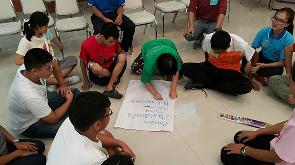 ครูเปรียว และครูกลาง พูดคุยทำความรู้จักกับกลุ่มจิตอาสา เล่าประสบการณ์จากจิตอาสาในงานครั้งที่ผ่านมา กำหนดบทบาทหน้าที่ของจิตอาสา และข้อตกลงที่จิตอาสาควรปฏิบัติในช่วงเวลาของการประชุมสภาคนพิเศษครั้งที่ 3